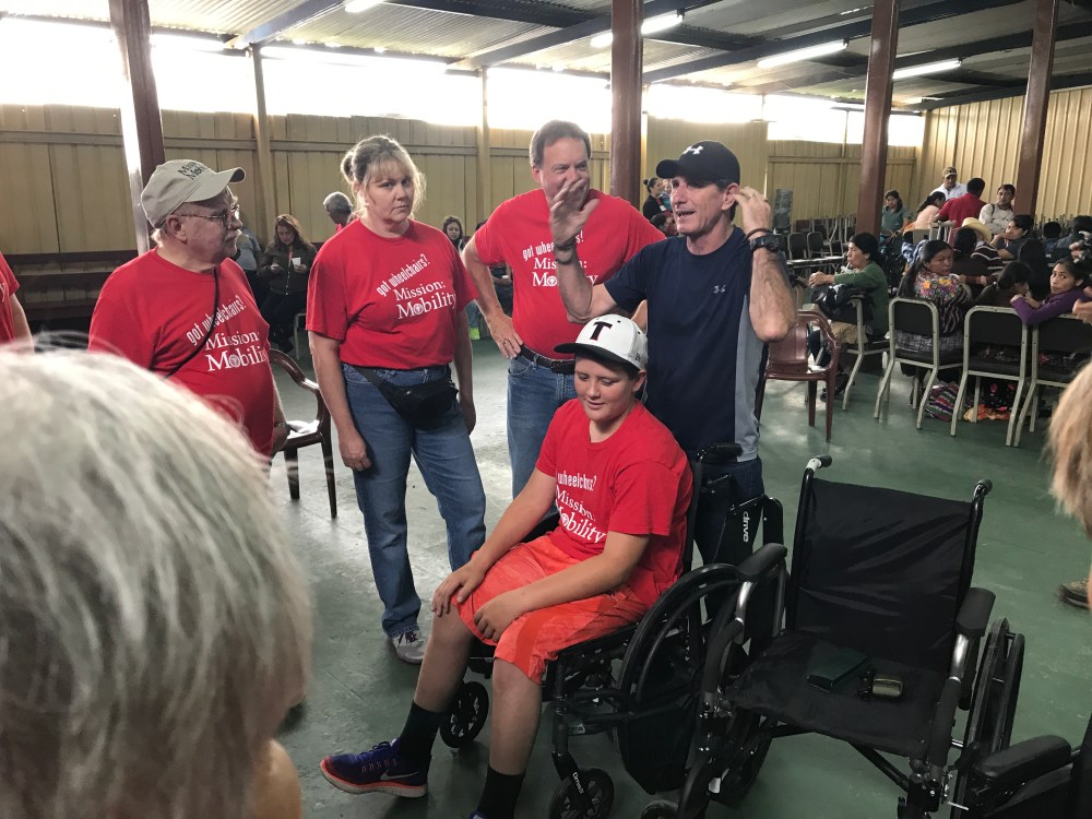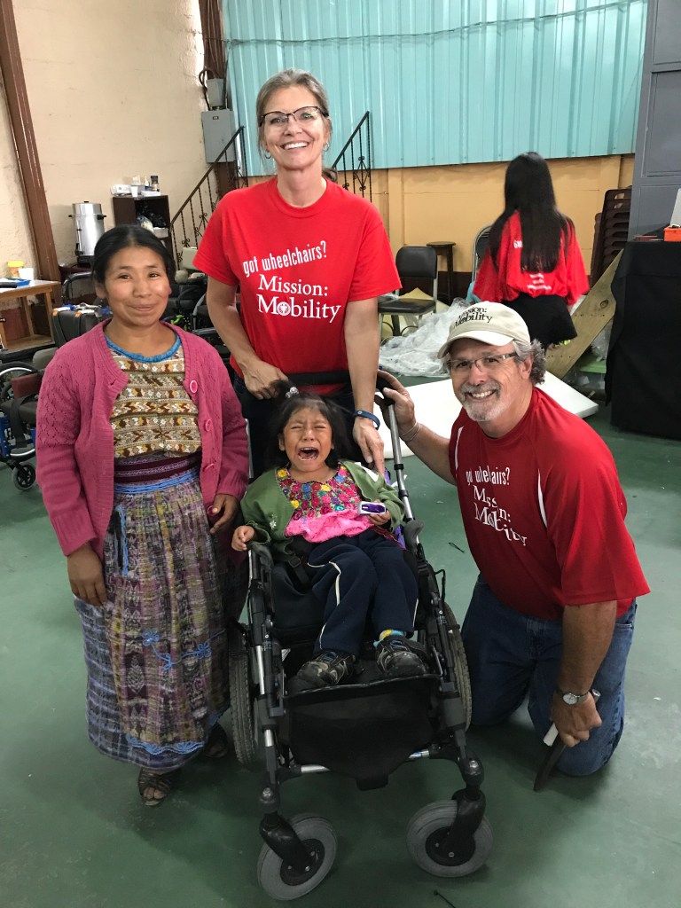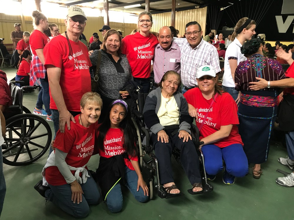 Chris asked me to address the crowd. I told them that as we collect the wheelchairs up in the states with Mission: Mobility, we collected for the people of Guatemala. I explained that when our volunteers load the equipment on the shipping container, we always pray for the equipment and for the people who will receive it. I told them that we did not send these wheelchairs to them, but I reminded them that God sent the this equipment to bless them. Throughout the event, the recipients and their families would thank Dios (God), not us!