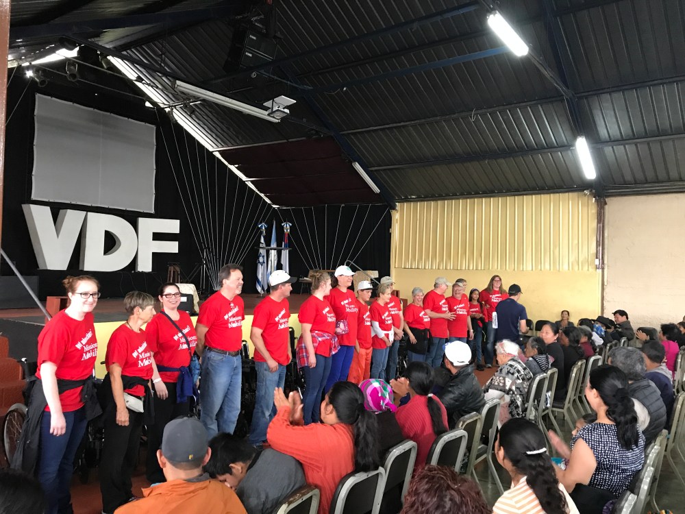 Chris then called the team to the front of the auditorium. He proceed to explain that we were a team from Iowa and that God sent us here today to help provide them with a free wheelchair! We were here today to Bless them.