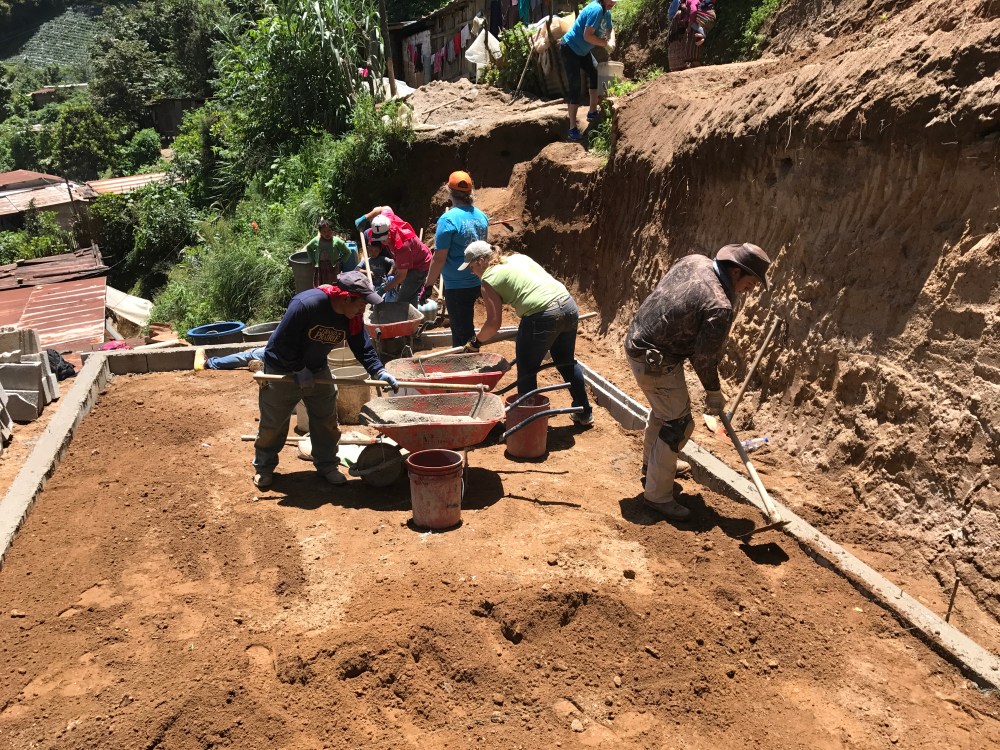 The first team moved dirt, prepared a foundation, mixed the cement, by hand, and laid concrete in the foundation and the floor of the 14 x 24 home. The home will be built tomorrow by one of our teams).