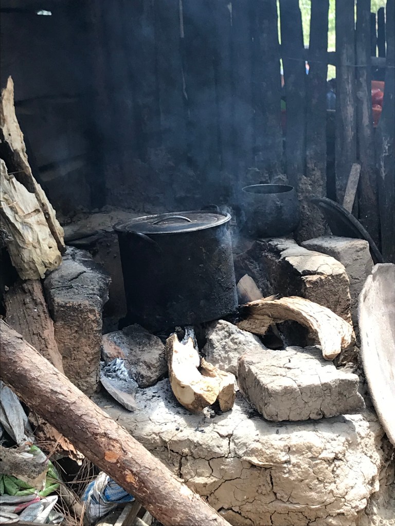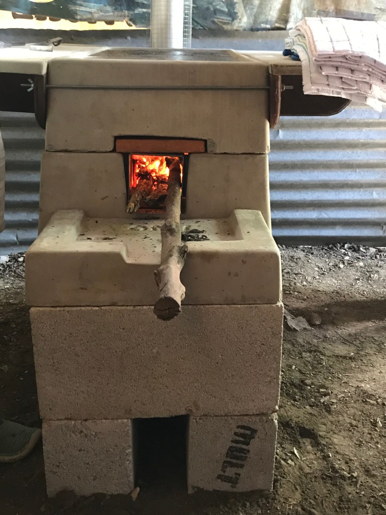 We build these efficient Onil stoves. They are amazing! They are a cement prefabricated, vented wood stove. Most of the people we work with have a “stove” that is generally 3 rocks with a metal plate on top. Many times that cooktop is the top off of a metal barrel. They burn whatever they can find. Wood, Plastic….. The smoke billows into the room of the home (often the ONLY room in the home). This is so bad for their lungs, and eyes. The ceiling and walls are generally covered in DEEP layers of soot! Not a good situation.
